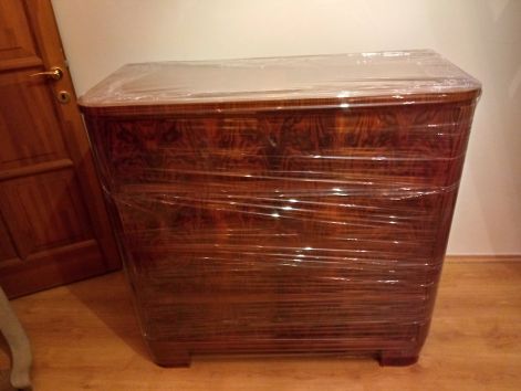 Költöztetésnél, bútorszállításnál cégünk, kivétel nélkül, minden bútort stretch fóliába csomagol.